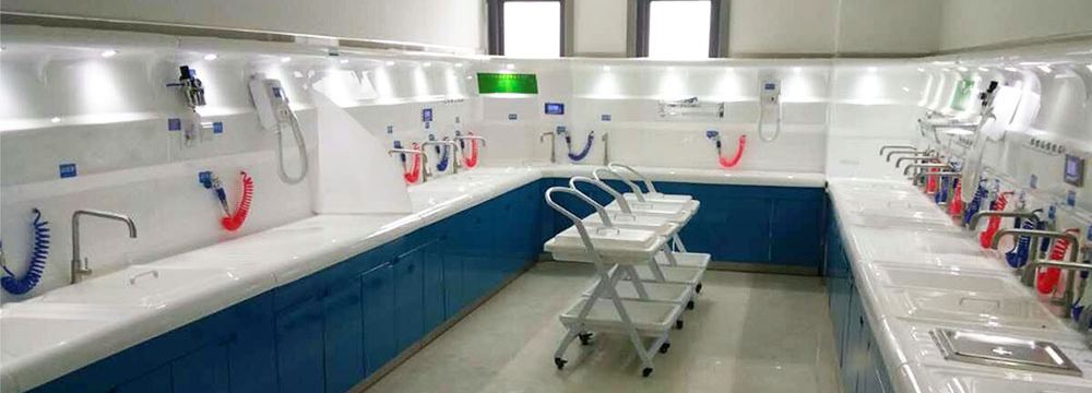有机玻璃内窥镜清洗水槽是我厂根据国家卫生部《规范( 2016版)》的要求制作 A 型或 B 型流水化清洗水槽。本产品采用有机玻璃材料制造,具有耐腐蚀、抗冲击力,抗压力强、重量轻,对内窥镜无损伤等特点。经上海长征医院,长海医院、中山医院、北京冶金医院、安徽省立医院、安医附院、江苏省人民医院、省中医院、福建省立医院、省人民医院、山东省立医院等一大批医院内窥镜专家使用后一致认可,被推广使用。内窥镜清洗水槽分四槽和五槽两种规格型号(其中又分为:普通型、组合型),适用于对胃镜、肠镜、气管镜、腹腔镜、膀胱镜、喉镜、宫腔镜、胆道镜导管等各种内镜的清洗,产品采用有机玻璃材料PMMA,俗名“仿真象牙”,表面光滑细腻,坚固耐用且易清洗,不磨损镜体表面(不会发生操作人员担心的内窥镜及其附属部件与钢铁制品相碰撞造成损伤的现象),化学性质稳定。产品外观颜色为珍珠白,晶莹剔透,美观大方,与医院整体色调完美融合。产品设计精巧、结构合理。无需通电,安全可靠,无需培训,操作简单。清洗槽、浸泡槽进水以及浸泡槽下水均装有ABS球阀,对水流量和流速进行自由控制。浸泡槽上配有盖子,有效防止灭菌剂的挥发,保证杀菌效果。